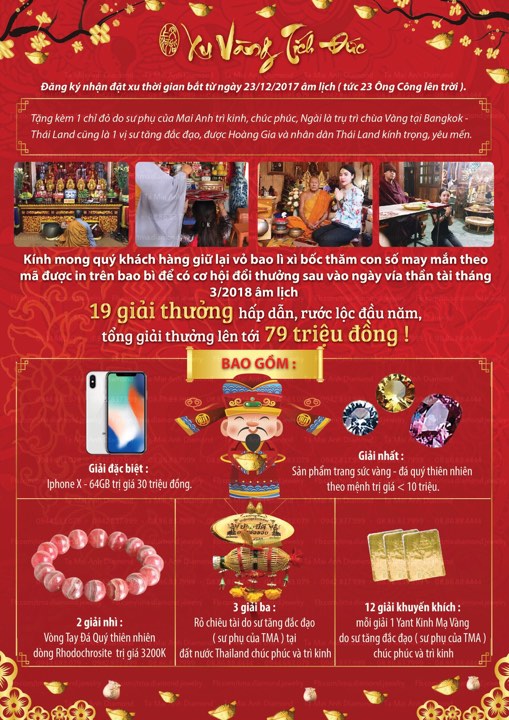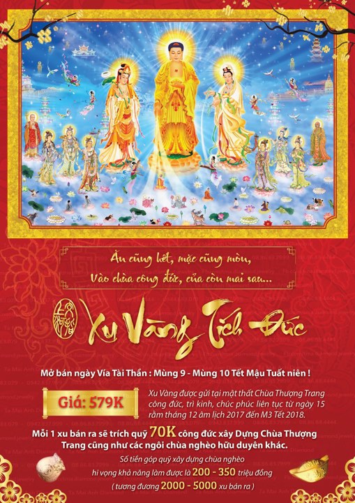 Mỗi bao lì xì bán ra sẽ được trích quỹ 70.000 VNĐ công đức xây dựng chùa Thượng Trang tại xã Mỹ Tân – Mỹ Lộc – Nam Định cũng như những ngồi chùa theo hữu duyên khác .